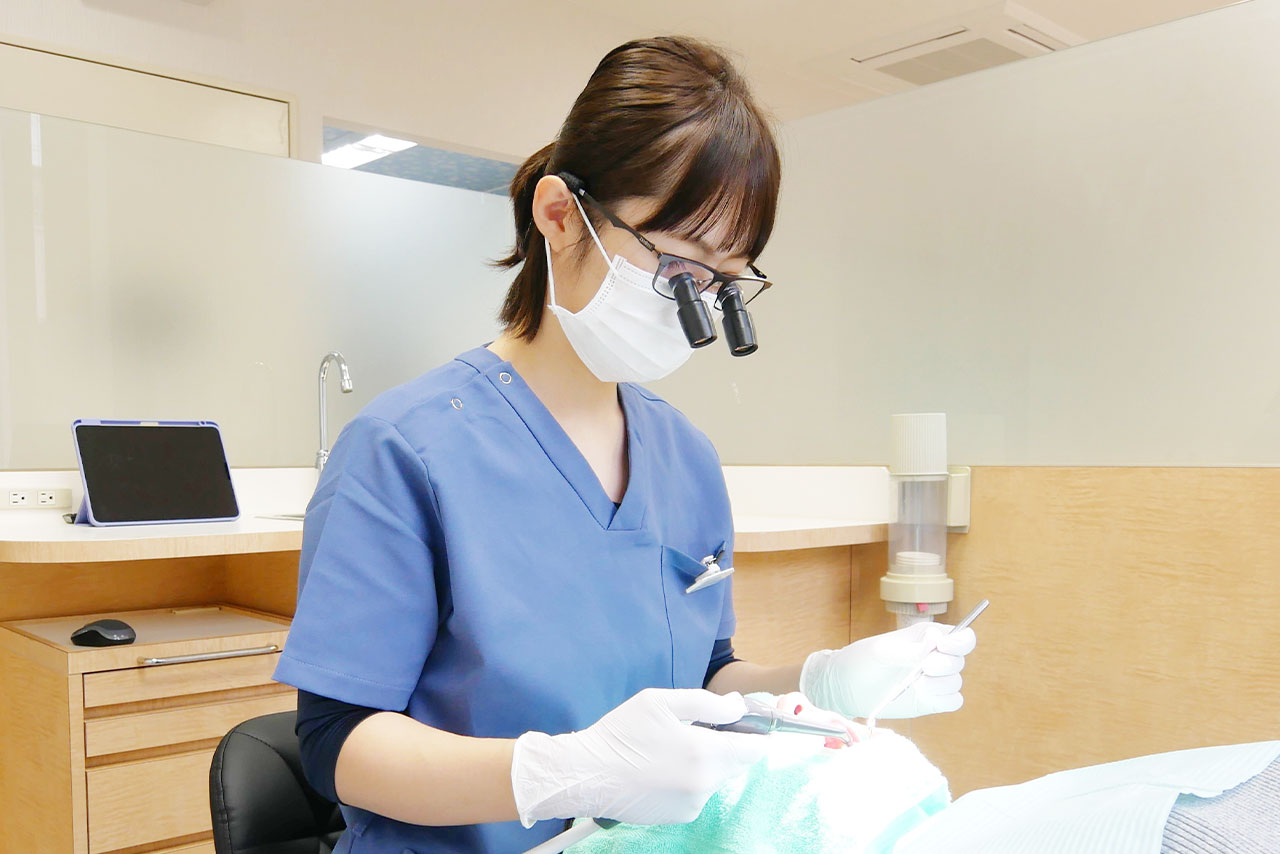 当院では大切な歯をできるだけ残せるように、目には見えない小さなむし歯も見えやすい拡大鏡を使用し、できるだけ最小限で歯を残す治療を心がけています。